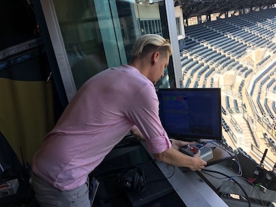 These members control how your picture looks including how bright or dark it is and the color. Every day they have to blend the various colors that each camera “sees” to make them match. If they didn’t adjust them, the green grass on one camera shot would look completely different than that of another camera. Since you never notice a difference, you know that these union members are doing a great job. They also set up all of the cabling so that the camera sources from around the venue enter the broadcast truck to be manipulated.