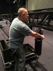 Audio-Visual Technicians set up a wide variety of equipment for conferences, trade shows and public shows at the convention center. These include, lights, truss, cameras, projection screens, projectors and sound systems.