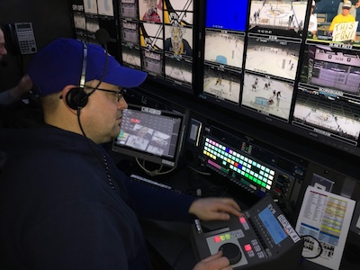 Every sound that you hear in a broadcast is controlled and blended by this member. They include the announcer’s mics, music, sound on video clips or replays, sound effects mics (think bat crack or a puck ringing off the pipes of the goal) and crowd mics. They set up all of the microphones, communication headsets so that those in the truck can communicate with those within the facility. They are also responsible for all of the cabling to make those connections.